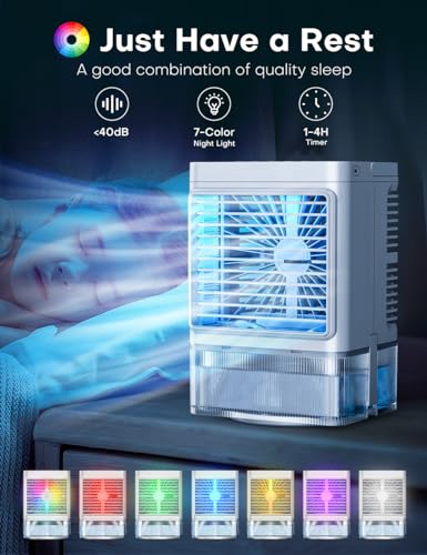 • COOLECH Personal Air Conditioner w/Remote & LED Screen, 90° Oscillation, 4H Timer, 7 LED Night Light, 2 Cool Mist, 3 Speeds Evaporative Air Cooler, Portable Air Conditioners for Bedroom Desk Camping