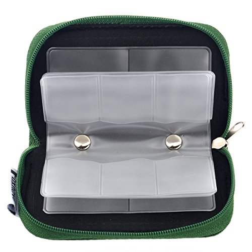 • Foxnovo 22-Slots SD SDHC MMC CF Micro SD Memory Card Holder Pouch Case Zippered Storage Bag Protector (Green)