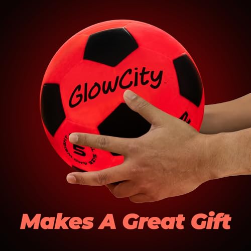 • GlowCity Glow in The Dark Soccer Ball | Light Up Indoor/Outdoor Soccer Ball with 2 LED Lights | Pre-Installed Batteries | Fun Gift for Teens