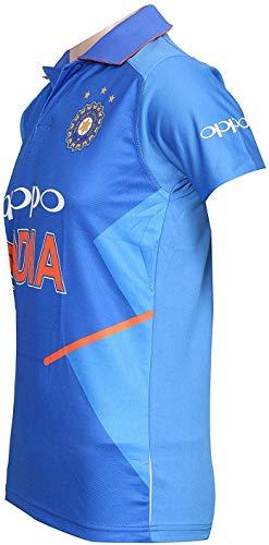 • KD Cricket India Jersey Half Sleeve Cricket Supporter T-Shirt New Oppo Team Uniform Polyster Fit Material 2019-20 Kids to Adults(Dhoni 7-46)