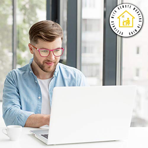 • Blue Light Blocking Glasses Women & Men | Anti Eyestrain Headache Blue Light Glasses Gaming Computer Glasses | Yellow Tinted Lenses with Blue Anti Reflective Coating + Cleaning Cloth & Case (Pink)