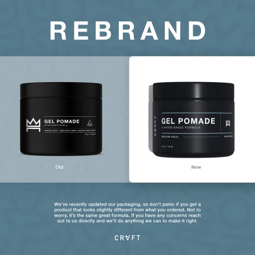 • CRVFT Gel Pomade 4oz | High Shine/Medium Hold | Water Based/Water Soluble | Ideal For Short/Medium Thin/Thick Hair | For A Clean Cut Look | Men’s Styling Product [Clear], Stylist Approved [Scented]