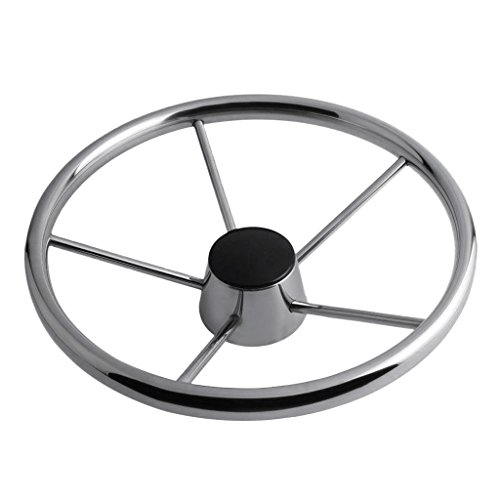 • D DOLITY 5-Spoke 13-1/2 Inch Stainless Boat Steering Wheel 3/4 Inch Shaft for Marine Yacht Pontoon Boats, 25 Degree