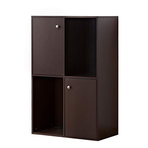 • DlandHome Bookcase, 2-Door & 2-Cube, Modern Floor Utility Storage Cabinet for Home Office, HH-GZ001-CF Brown, 1 Pack
