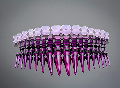CABBE KALLO CABBE 50pcs Ear Stretching Kit Silicone Tunnels Acrylic Tapers and Plugs 14G-00G Gauges Set Eyelet Expanders for Women Men Body Piercing Jewelry (Purple)