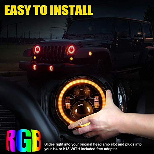 • 7" RGB Halo LED Headlights with Multicolor DRL + 4" Fog Lights Combo Kit for Jeep Wrangler 1997-2018 JKU JK Rubicon TJ LJ,Bluetooth Remote Control