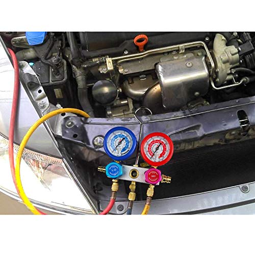 • FavorCOOL HVAC Gauges AC Manifold Gauge Set for R410a R134a R22 Refrigerant for Home AC Aluminum Body 3-Way AC Gauges R410a Manifold Set with 4FT Hoses and Gauge Set Auto Recharge Kit