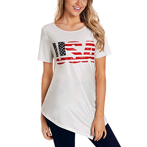 • Cute Tops for Women,YEZIJIN Women's Short Sleeve Asymmetric Hem T-Shirt Ladies Letter Tops for 4th of July 2019 White