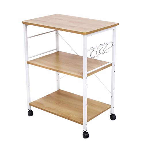 • HOFOME Kitchen Backer's Rack, 3 Tier Kitchen Island Cart Utility Microwave Oven Cart, Metal Frame Storage Stand Shelf Light Oak