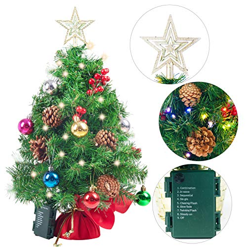 • Joiedomi 23" Prelit Tabletop Christmas Tree with Multicolored Lights, Holly Berries, Pine Cones, Star Tree Topper & Ornaments for Best Holiday Season Decorations