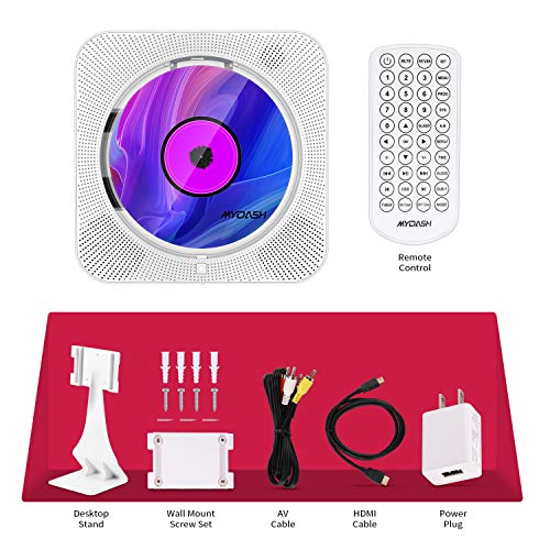 • MYDASH CD/DVD Player, Wall Mountable CD/DVD Player Portable with Bluetooth Built-in HiFi Speakers with Remote, CD Player Boombox Support 1080P HDMI Output FM Radio USB AV Out Headphone Jack