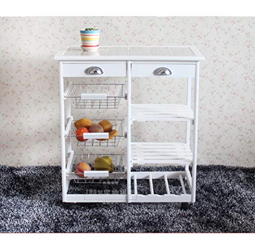• Byya Wood Kitchen Island Storage Trolley Rolling Utility Cart Rack with 2 Drawers 3 Vegetables Baskets,1 Red Wine Rack,Dining Stand with Wheels White Countertop for Kitchen Dining Room (White)