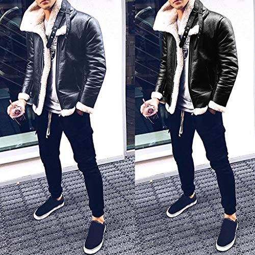 • Mens Bomber Leather Jacket, Warm Faux Leather Motorcycle Shearling Suede Stand Collar Zipper Outwear Tops Coat for Men (M, Black)