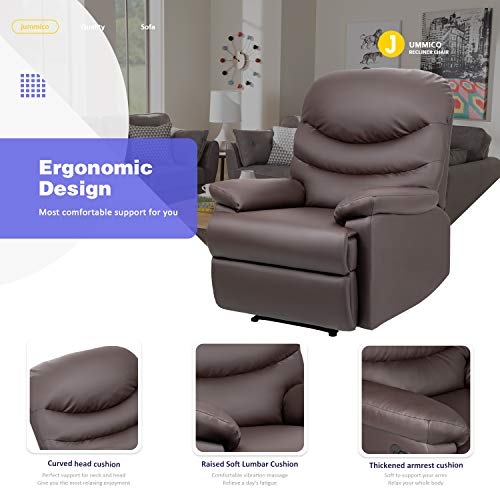 JUMMICO Recliner Chair PU Leather Sofa Adjustable Home Theater Seating Single Recliner Sofa Classic Lounge Chair Living Room Recliners with Three Section Cushion