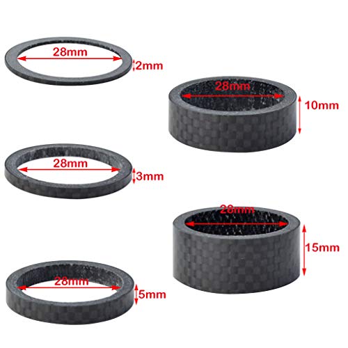• Fengek 15 Pcs Headset Spacer for Bicycle, 5 Sizes Carbon Fiber Road Bicycle Stem Headset Spacers Kit for 1-1/8 Inch Stem, 2mm 3mm 5mm 10mm 15mm