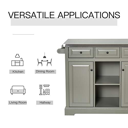 • HOMCOM 51" x 18" x 36" Pine Wood Stainless Steel Portable Multi-Storage Rolling Kitchen Island Cart with Wheels - Grey