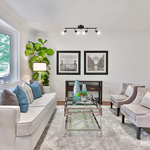 Ascher 4-Light LED Track Lighting Kit, Flexibly Rotatable Light Heads, 4 Way Ceiling Spotlight Black Finish, Including 4 GU10 LED Bulbs (4W 400LM Daylight White 5000K), 4 Light