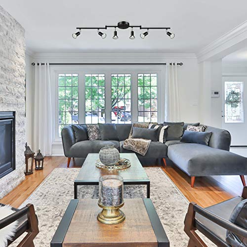 • Ascher 6-Light LED Track Lighting Kit, Flexibly Rotatable Light Heads, 6 Way Ceiling Spotlight Black Finish, Including 6 GU10 LED Bulbs (4W 400LM Daylight White 5000K)