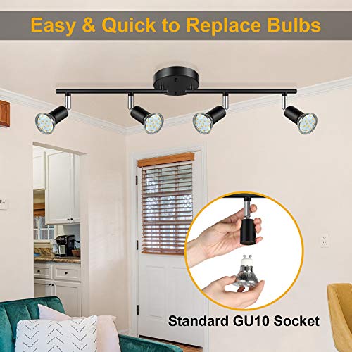 • Ascher 4-Light LED Track Lighting Kit, Flexibly Rotatable Light Heads, 4 Way Ceiling Spotlight Black Finish, Including 4 GU10 LED Bulbs (4W 400LM Warm White 2700K)
