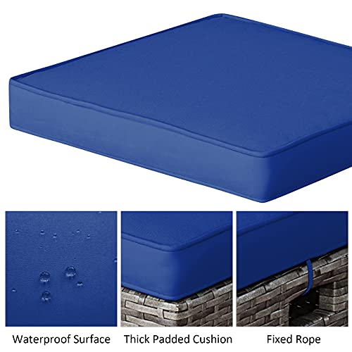 Tangkula 2 Pieces Patio Rattan Ottomans, Outdoor Wicker Footstool Footrest Seat with Soft Cushions and Steel Frame, All-Weather Patio Ottoman Set for Backyard Garden Poolside, Mix Grey + Navy, 16” x 16”x 18”