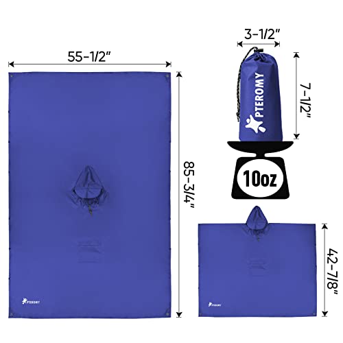 • PTEROMY Hooded Rain Poncho for Adult with Pocket, Waterproof Lightweight Unisex Raincoat for Hiking Camping Emergency (Blue)