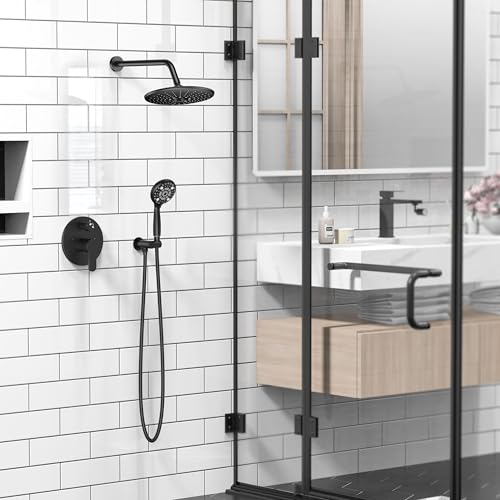 SR SUN RISE Shower Faucet - 10 Inch Multifunctional High Pressure Shower Head System with Handheld Shower Head Fixtures - Valve Included - Matte Black