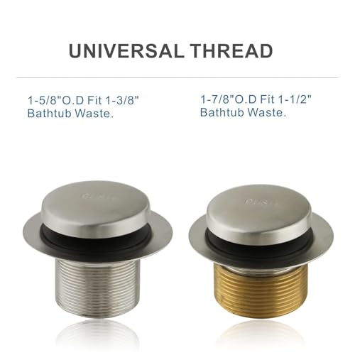 • Brushed Nickel Tub Drain Tip-Toe Tub Trim Set Conversion Kit Assembly, Hidrop Bathtub Drain Replacement Trim Kit with 2-Hole Overflow Faceplate and Universal Fine/Coarse Thread, Brushed Nickel