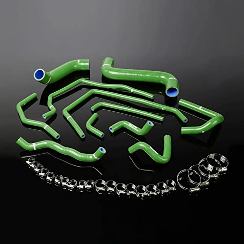 • G-PLUS Silicone Radiator Coolant Hose Kit Clamps Compatible With 2002-2007 Subaru Impreza WRX/STi GDA/GDB EJ207 (Green 11 PCS)