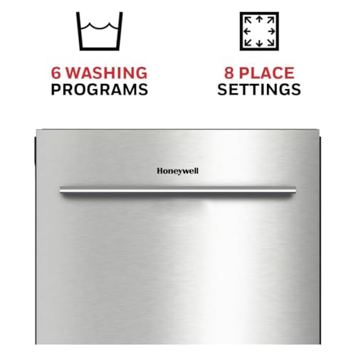 • Honeywell 18-Inch Dishwasher with 8 Place Settings, 6 Washing Programs, Stainless Steel Tub, UL & Energy Star Certified, Stainless Finish