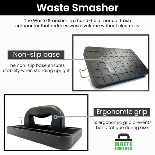 • Waste Smasher - Manual Trash Compactor Tool - Hand-Held Garbage Press with Built-in Hook - for Kitchen Waste Bin - Space Saving Design - No Batteries Required - Freestanding - Black
