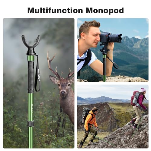 • Manbily Monopod Shooting Stick for Hunting, Aluminum Stand with U Shaped Rest Head and Walking Stick Handle, up to 68 inch-Green (No Base)