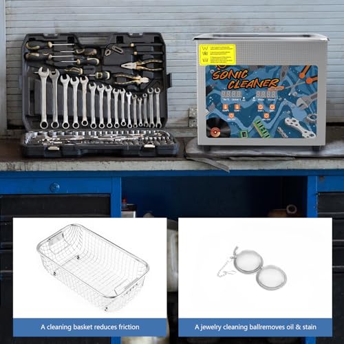• KECOOLKE 3L Sonic Cleaner with Large Capacity with Heating and Time Setting 120 Watt Powerful Stainless Steel Professional Sonic Cleaner for Cleaning Tool Watch Glasses