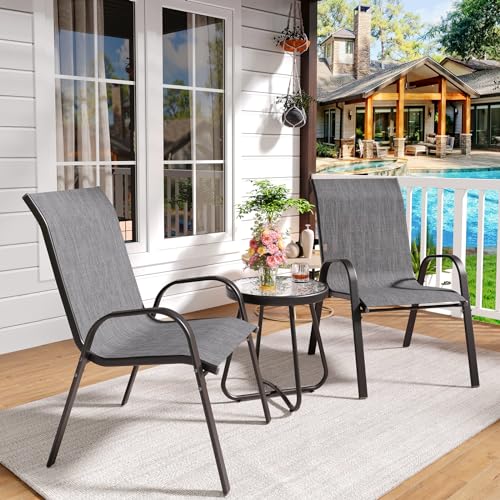 • Amopatio 3 Piece Patio Set, Outdoor Stackable Dinging Chairs for All Weather, Breathable Garden Outdoor Furniture for Backyard Deck, Dark Grey
