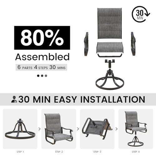 • VONZOY Patio Swivel Chairs Set of 6, Outdoor Dining Chairs with High Back, All-Weather Swivel Rocker Chair for Lawn, Porch or Garden (Padded Dark Grey)