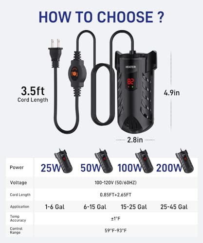 • AoquvZenra 100W Mini Aquarium Heater, Submersible Heater Adjustable Fish Tank Heater with Constant Temperature Control System of 78℉, For Betta Fish Turtle Heater 15-25 Gallon Freshwater and Saltwater