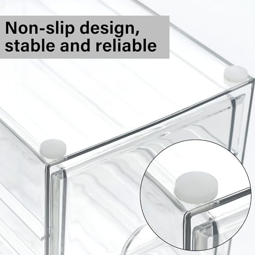 • Prsildan Acrylic Drawer Makeup Organizer with 6 Drawers (Not for Baby Bottle), Set of 2 Office Desk Organizers Accessories, Clear Stackable Storage Drawers for Vanity, Craft (Largest Drawer 4" Tall)