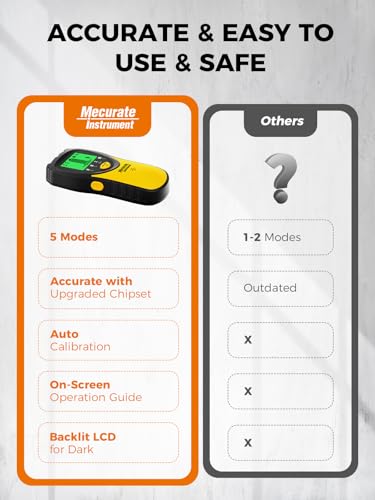 • Mecurate 5-in-1 Stud Finder with LCD Display, Wall Scanner for Studs, Metal, AC Wires Detection, Lightweight & Durable, Perfect for Homeowners & DIY Projects