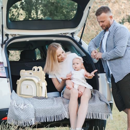 MoreFeel Collapsible Baby Bathtub for Newborn with Thermometer & 1 Hooded Towel & 1 Soft Floating Cushion,Portable Travel Bathtub with Drain Hole, Durable Foldable Baby Tubs for Infants to Toddler, Beige