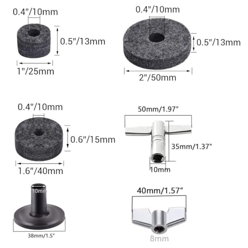 • TUOREN Drummers Survival Hardware Kit 9Pcs Cymbal Parts Cymbal Sleeves Felts Hi Hat Clutch Hi Hat Cup Wing Nut, 12Pcs Drum Tension Rods M6X60 M6X50 M6X15 mm, 1Pcs Drum Tuning Key, 1Pcs Snare Straps