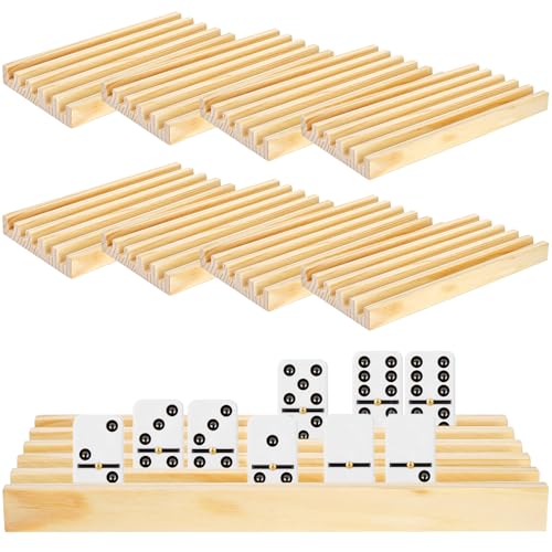 • Noamus Set of 8 Wooden Domino Racks, Premium Natural Domino Trays, Solid Domino Tiles Holders Organizer for Mexican Train Chickenfoot Cuban Domino Games - Dominoes NOT Included