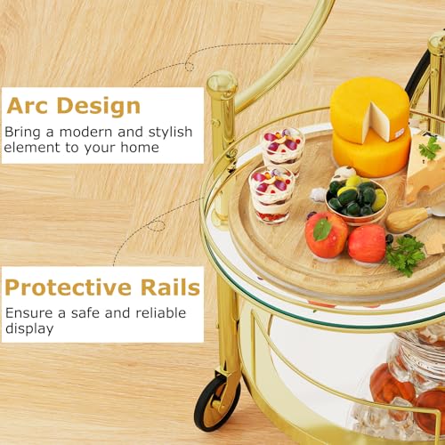 • Tangkula Bar Cart, 3-Tier Rolling Home Bar Serving Cart with Mirrored Shelves & 4 Wheels, Mobile Beverage & Wine Cart for Kitchen, Dining Room, Living Room (Gold)