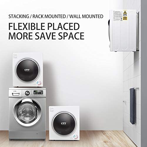 • CTT 3.5 Cu. Ft. Clothes Dryer, 1500W Electric Dryers for Clothes, 110V Electric Clothes Dryer with Stainless Steel Drumble for 13.2 lbs. with 4 Automatic Drying Modes (White)