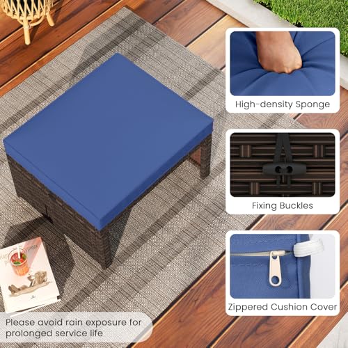 • Tangkula 2 Pieces Patio PE Rattan Ottomans, Multipurpose Outdoor Footstool Footrest Additional Seating Side Table with Soft Zippered Cushions for Deck, Garden, Poolside and Yard (Navy Blue)
