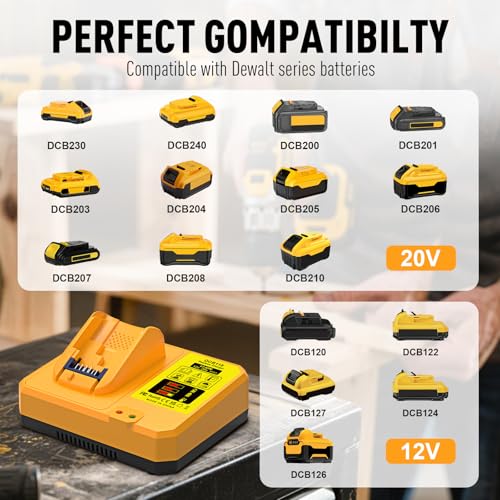 • DCB118 Replacement for Dewalt Battery Charger, Fast Charger with USB Compatible with Dewalt 20V 60V max Battery