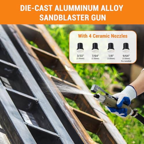 • 5 Gallon Sand Blaster Sand Blasting Machine, 60-110 Psi Pressure Air Sand Blasting Kit with 4 Ceramic Nozzles & Oil-Water Separator, Portable Abrasive Blaster for Paint Stain Rust Removal